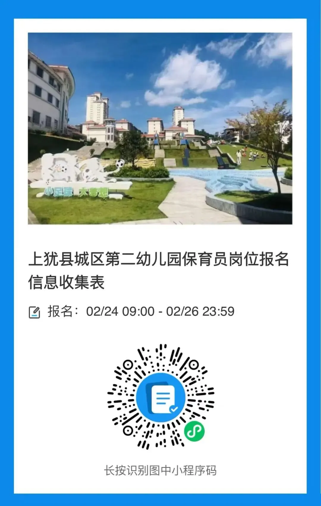 赣州上犹县城区第二幼儿园(旅游文化城园区)招聘保育员公告