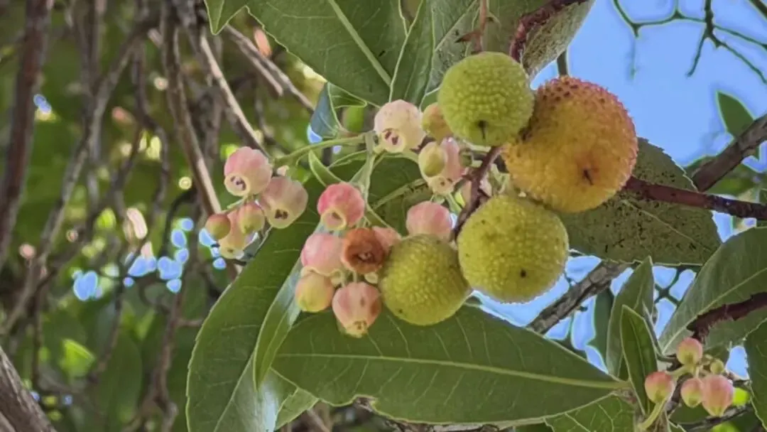 花园式酒店,有泳池、喷泉、烧烤炉,花开正艳。