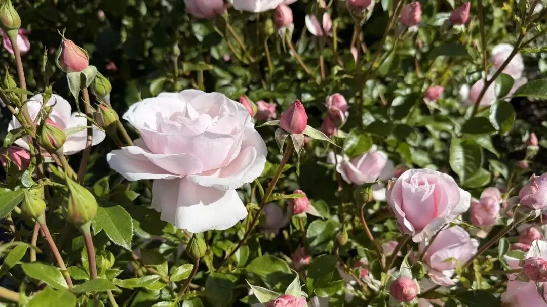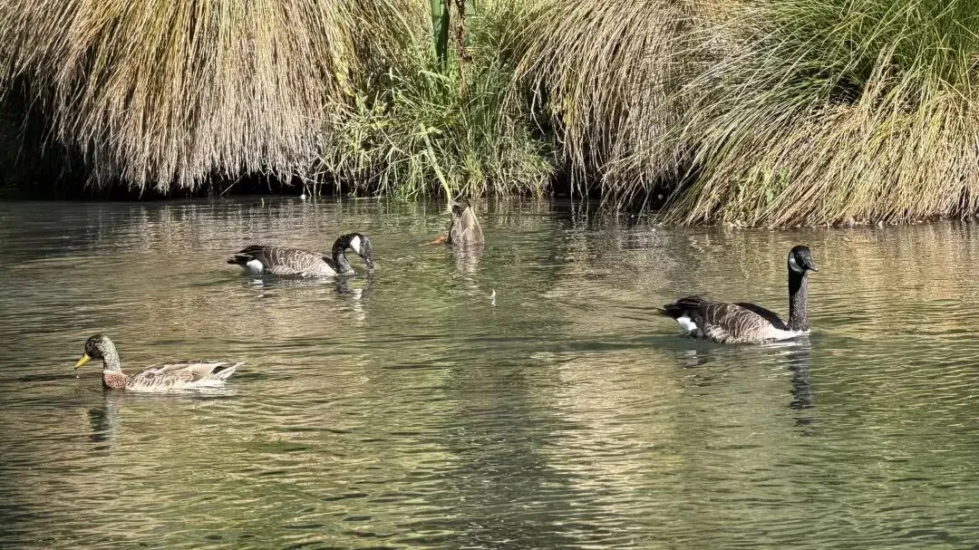 公园内植物品种很多,月季花开正盛,雅芳河内野鸭逍遥,偶有小船载着游客缓缓滑过。