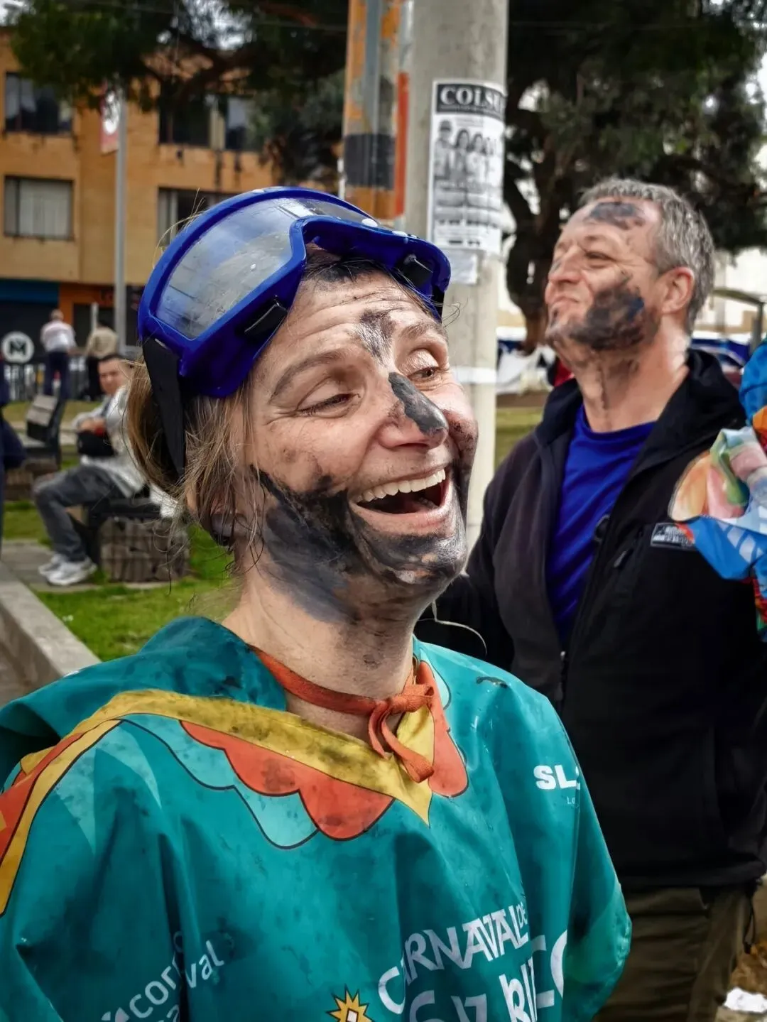 大街与广场上,每个人都穿着五彩的节日服装,脸上涂着各种颜料,许多人还戴着防目镜。人们手上还拿着喷筒,见人就会喷射。走在街上,冷不防就有白色泡沫喷射而来。一辆车从他身边开过,车内一男孩摇下车窗就把泡沫喷了出来,差点喷了他一身。这大概有点像傣族的泼水节了。