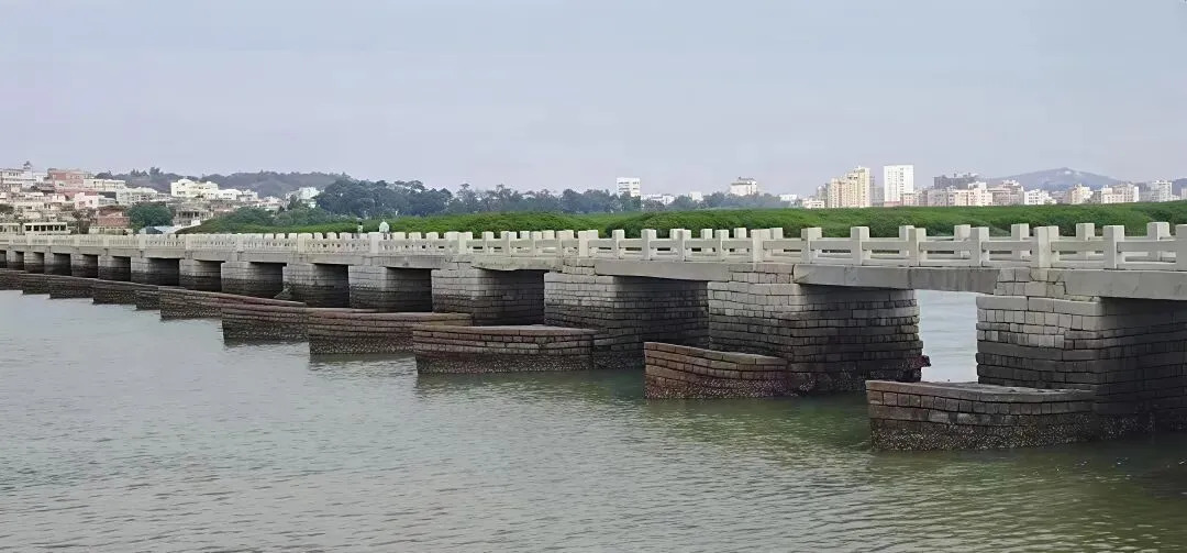 傍晚时分在桥头守候日落,看余晖洒在月光菩萨塔上。退潮时可观察桥墩上密密麻麻的牡蛎,感受自然与人工的完美结合。