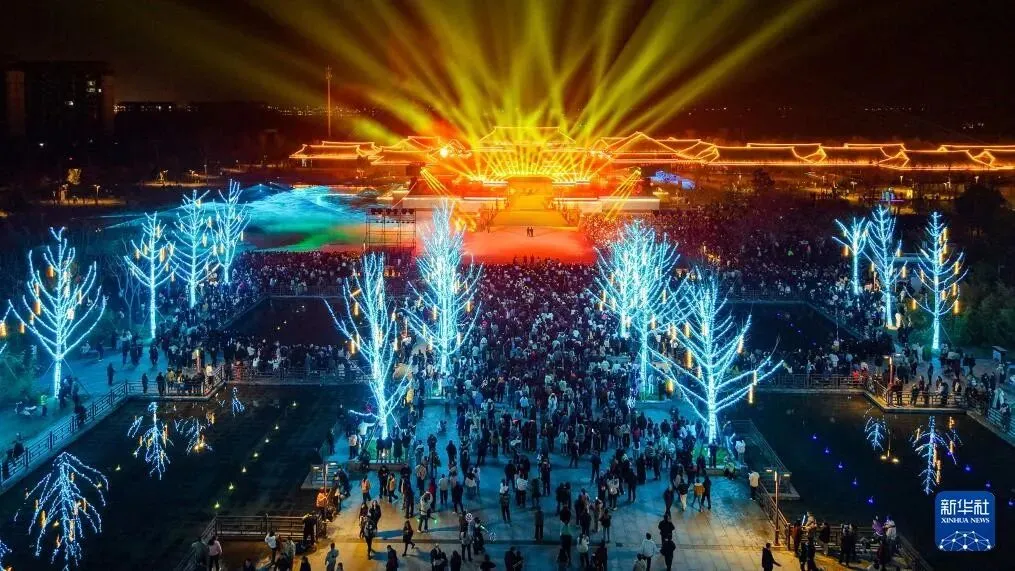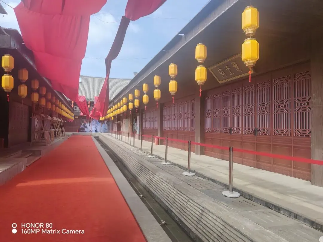 从媒体报道中看到前天晚上在荆州市纪南文旅区楚文化数字产业园举办了“荆州十二时辰.楚乐八百年”首演。上万名市民游客齐聚鼎成广场,共赴了一场沉浸式文化体验盛宴。从媒体发布的照片来看,周边的仿楚国古建筑群全部做了灯光秀设计,还增加了许多供游客互动的游乐项目。我们决定去那里看看。