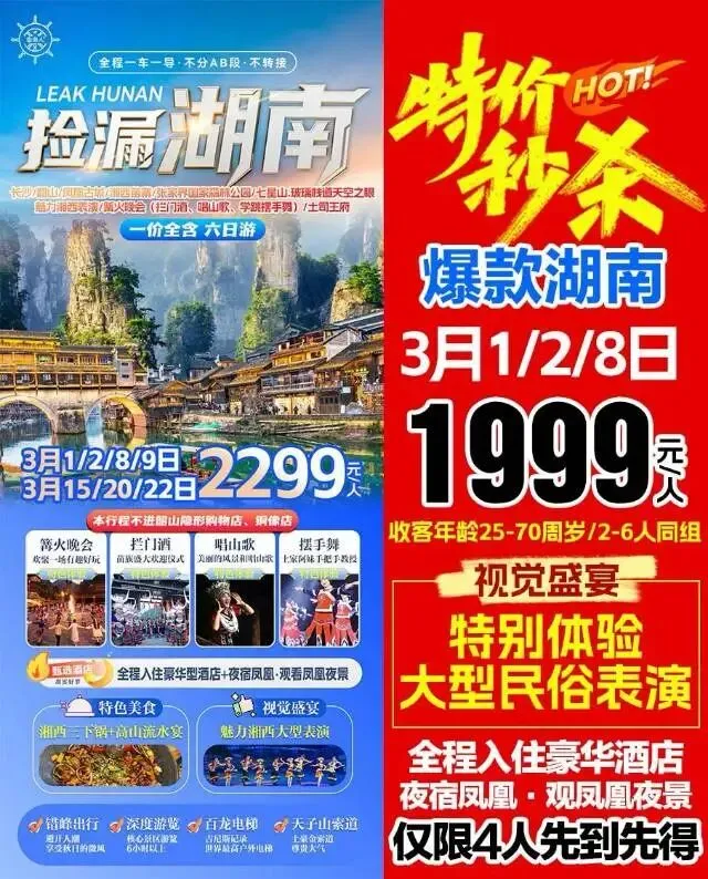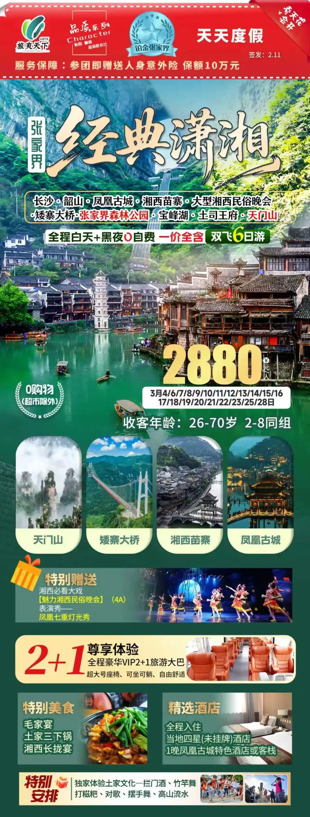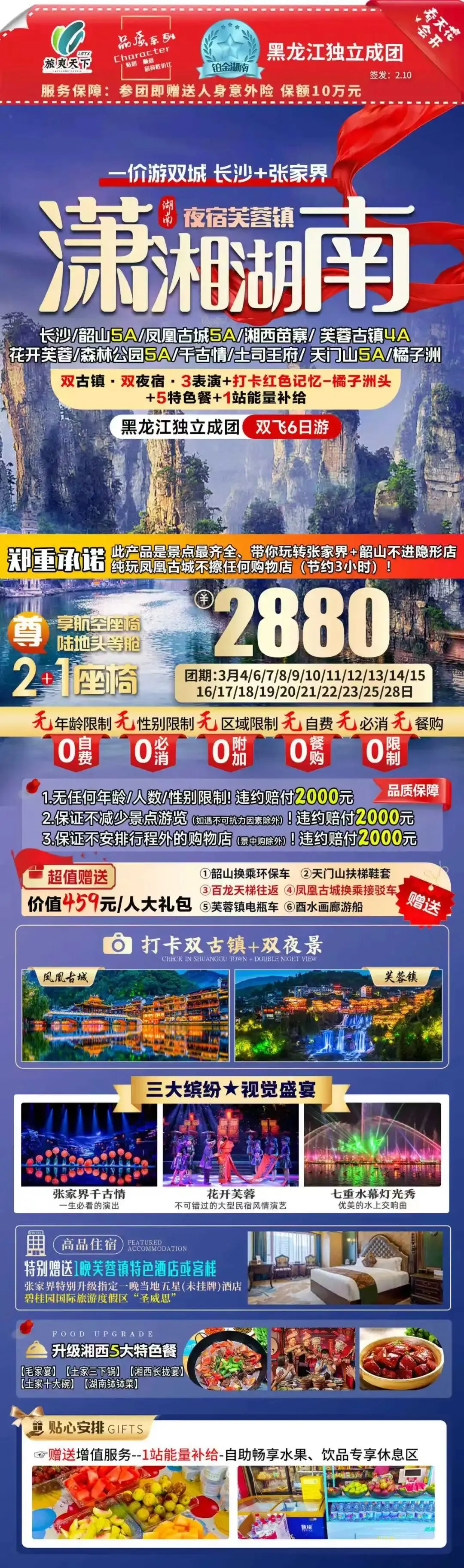 【肇东纵横旅游春季团】阳春三月张家界团期