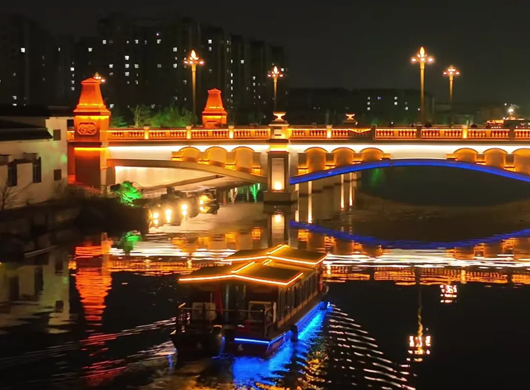 台儿庄古城夜间旅游产品持续丰富,夜间演艺、花灯展览、夜市摊位、非遗手作等多元业态交相辉映,推动夜间消费提质扩容。古城内台湾街西段沉浸式体验街区全新亮相,引入运河莲帽、非遗剪纸、葫芦烙画等30余家特色项目,春节期间“梦的礼物”“梦的幻妆”“布染凡尘”等新业态投入运营,街区新增传统美食、文创零售、非遗展品摊位50余个,全城2800个灯笼焕然一新,点亮古城夜色,带动夜间客流和消费双增长。图书馆码头沿岸流光溢彩、如梦似幻,成为新春时节一道亮眼的风景线。不少市民与游客乘画舫夜游,在碧波与光影间,沉浸式感受水城夜色的独特魅力。