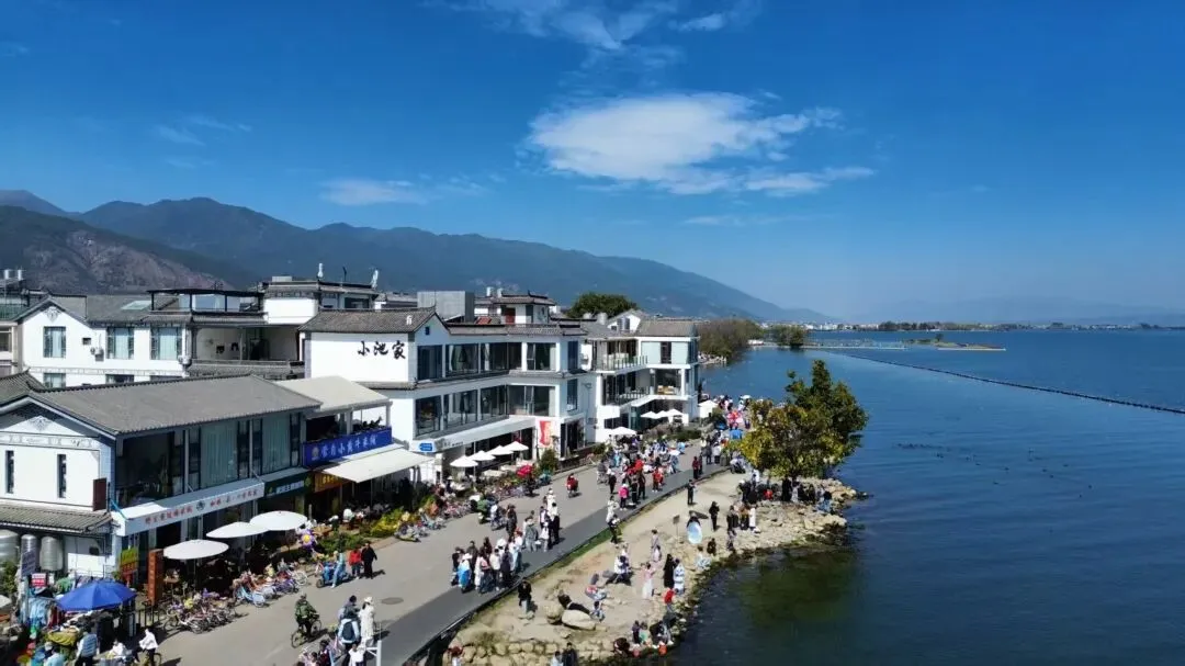 (4)双廊古镇(苍洱风光第一镇):洱海东北岸文艺渔村,玉几岛、杨丽萍太阳宫/月亮宫在此;临湖咖啡馆多,适合看日落。古镇免费,部分院落/观景台收费;可乘洱海游船或自驾抵达;傍晚5–7点景色最佳。