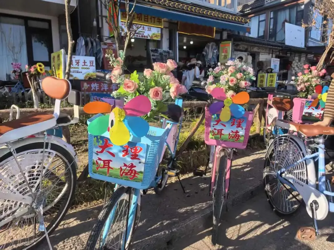 次日一早先去了洱海,民宿有三轮车前往,价格为30元,2.8公里的路程。老板说可以在他哪里租电动车前往,80元/天。但车子不能直接开进景区,想想不还算,就选择乘车前往,到洱海后租车游玩。