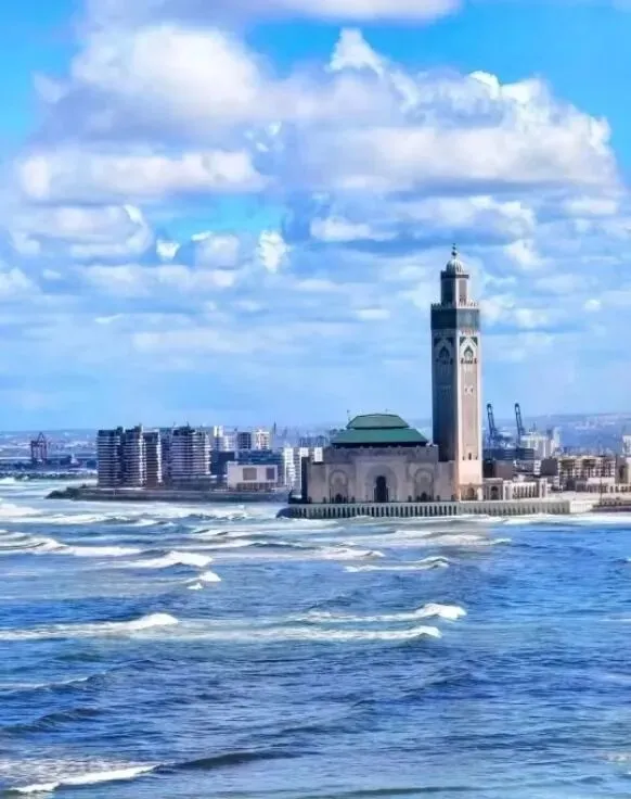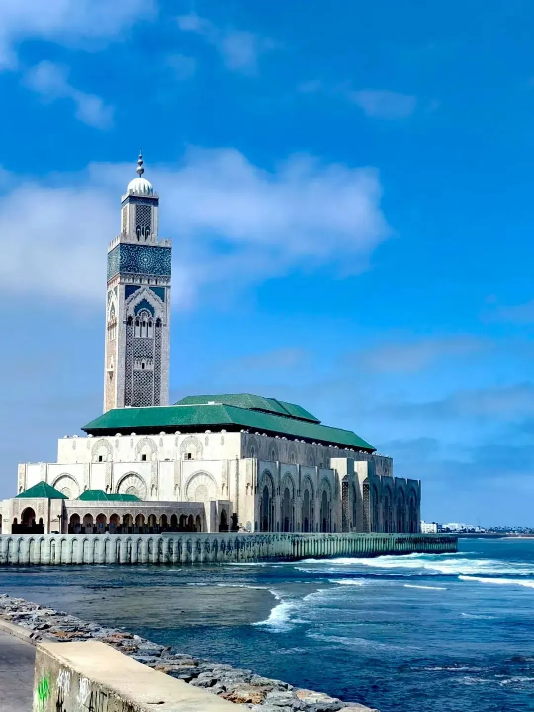 在摩洛哥卡萨布兰卡的大西洋畔,一座三分之一悬于海上的白色圣殿拔地而起 ——哈桑二世清真寺,它是伊斯兰世界的第三大清真寺,更是将传统与现代奇迹般融合的建筑瑰宝。