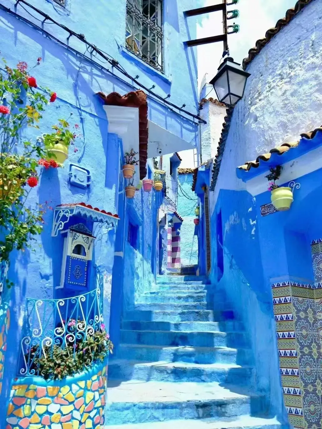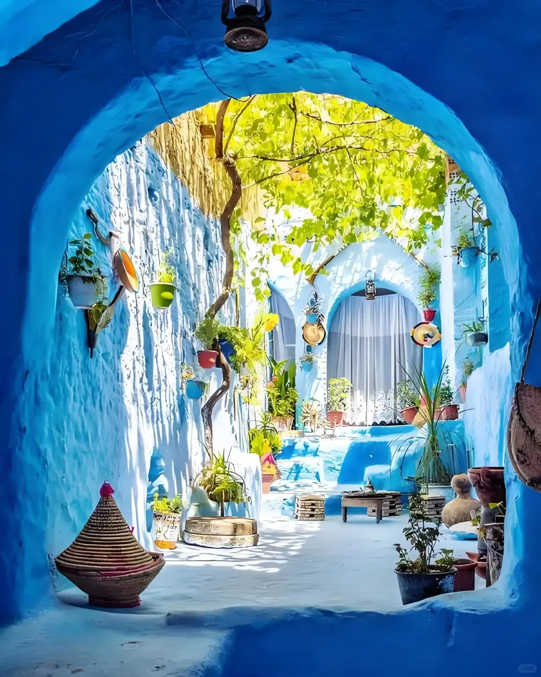 舍夫沙万(chefchaouen)是摩洛哥西北部一个精致美丽的山城✨。国家地理杂志曾经这么评价舍夫沙万:“摩洛哥小镇舍夫沙万弯曲的街道,都蒙上了一层梦幻的蓝色”。