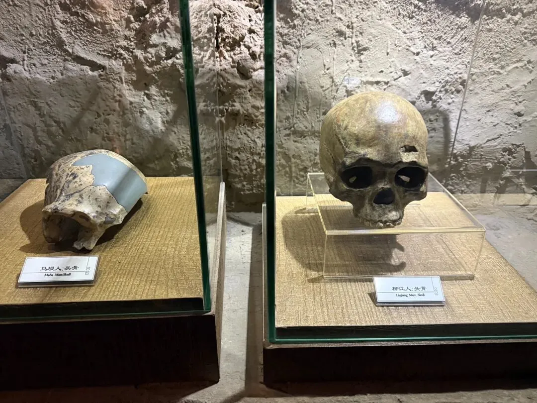 我们首先参观了水洞沟遗址博物馆,馆内陈列着一些人类头盖骨化石和旧石器时代的打制石器。