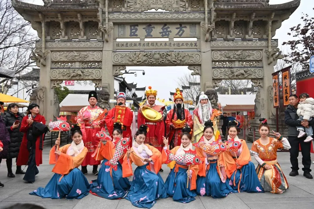 除了特色演艺与舌尖美味,婺剧展演、街区戏曲快闪、“福禄寿喜财”五福巡街送福、非遗高跷街头展演、龙灯开眼、迎龙灯、梨园广场文艺赋美演出、贺岁电影温情放映等一系列活动轮番登场,将庙会的新春氛围拉满,让卢宅的年味愈发浓郁醇厚。
