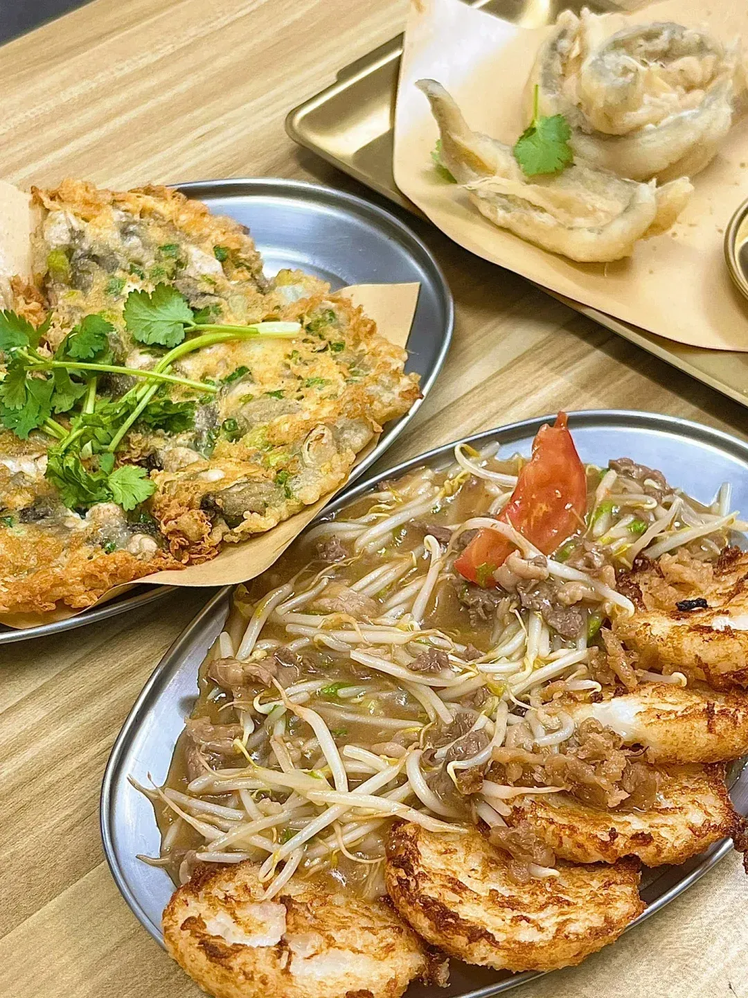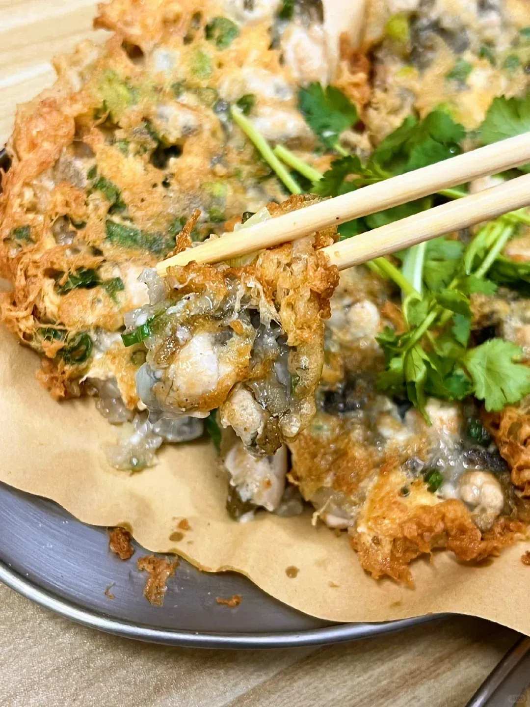 蚝烙是鸡蛋、薯粉与生蚝的完美结合,喜欢吃生蚝的朋友们不要错过了!一口咬下去,满嘴脆响的油脂香,混合着饱满多汁的生蚝,美味至极。