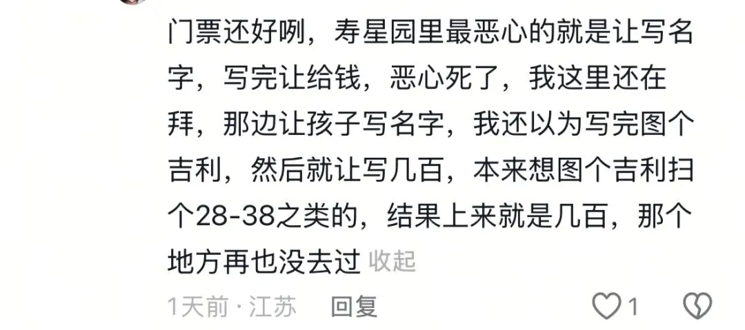 先引导您完成了写名字、接受服务等,给人一种“已接受好处”的错觉,此时再谈钱,让人难以抽身。将商业收费与“功德”、“祈福”等概念绑定,让拒绝行为在心理上变得“不吉利”或“不诚心”。网友表示,这是一种精心设计的、利用人性弱点和信息不透明进行的变相强制消费,不该在这种景点出现。