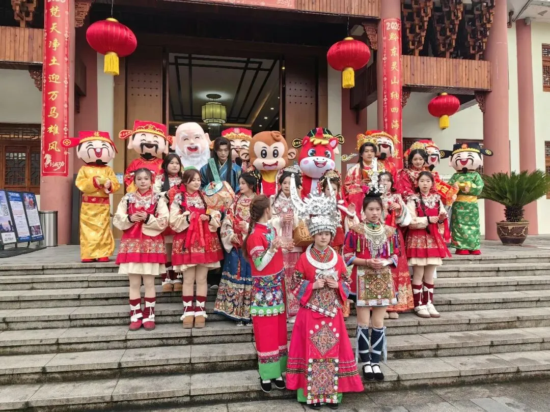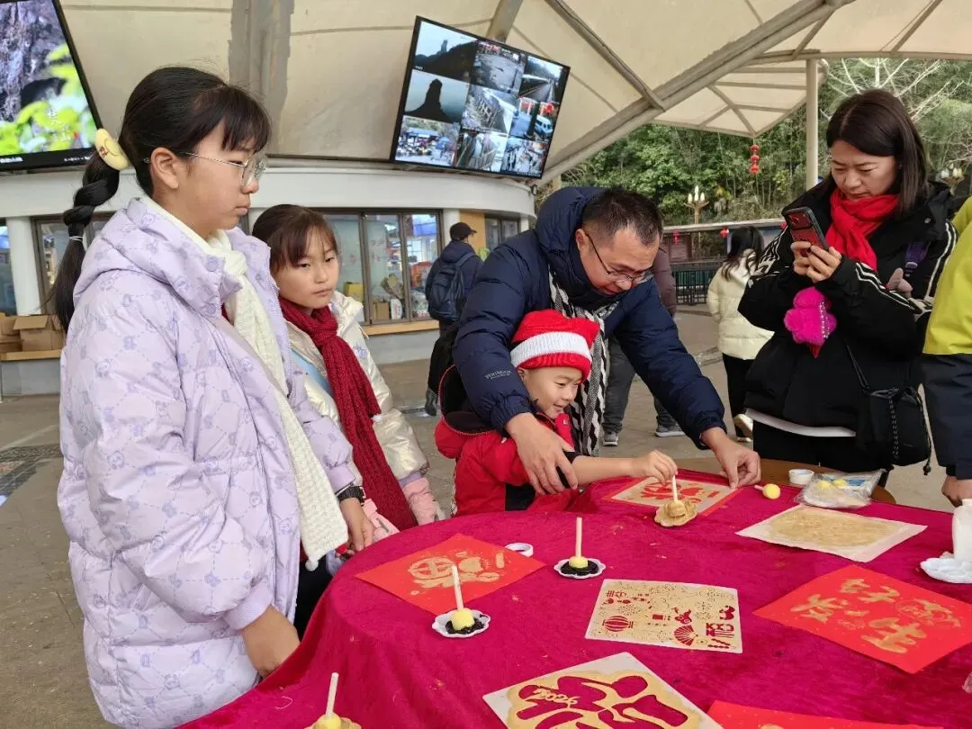 在梵净山景区,游客们在预检区观看侗族文化表演、拓印福字、领取登高祈福带,在感受大自然的神奇魅力时,还能参与到活动中,感受祥和的马年春节。
