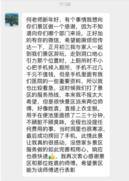 事后,游客专门给景区发来感谢消息
