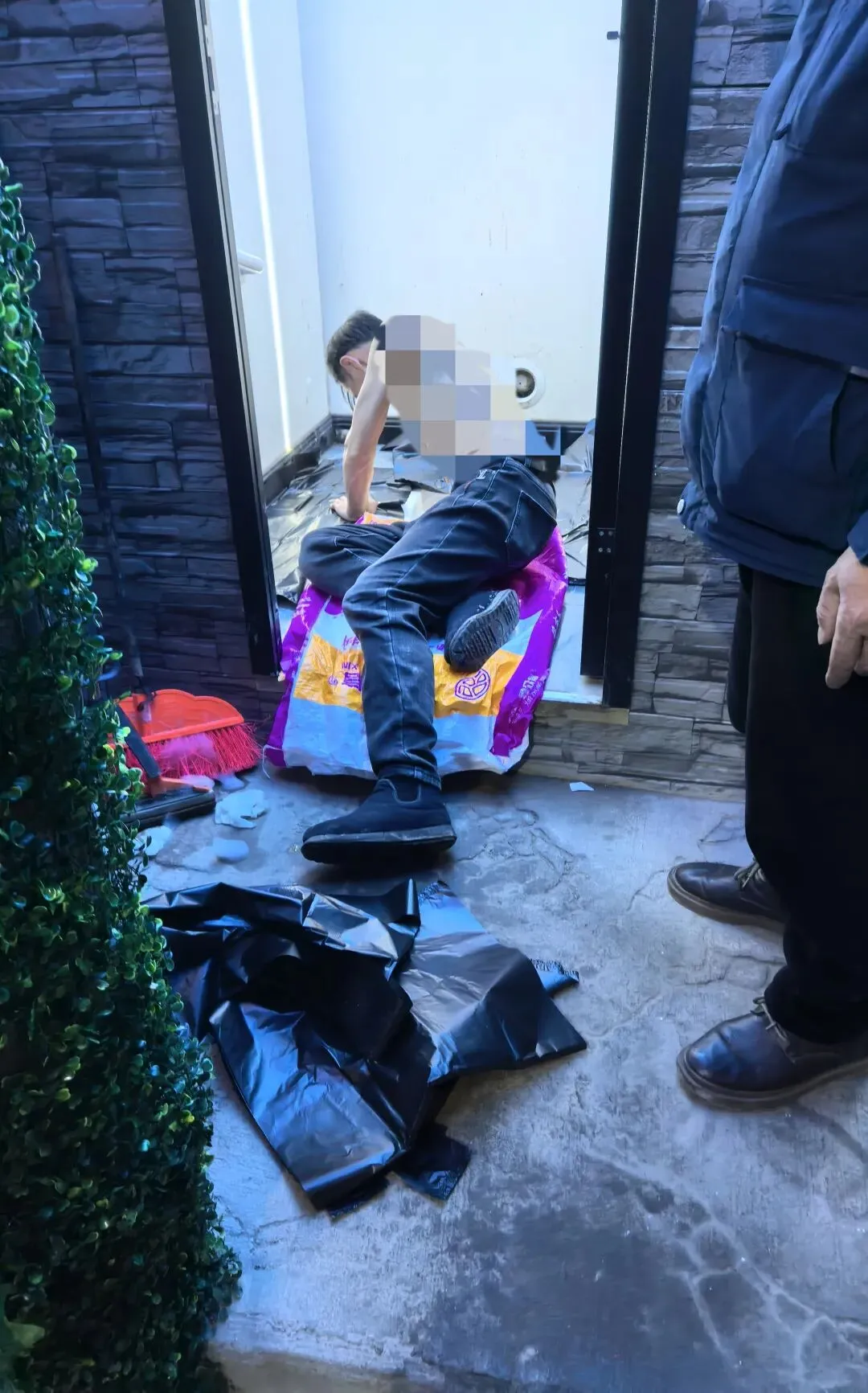 他侧身半躺在厕所里二十多分钟