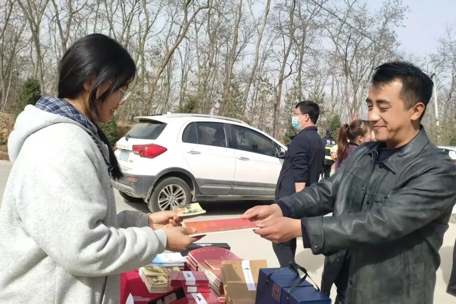 为让红色文化更具传播力,爷台山战斗遗址的工作人员,在入口处设置红色文化宣传处,春节期间累计发放宣传册5000多份、《威震爷台山》小人书2800多册、文创产品200份。