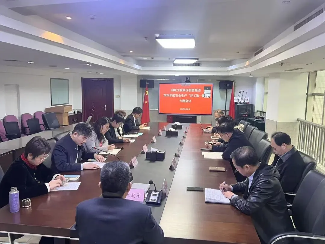 为持续强化安全生产主体责任落实,防范复工复产期间生产安全事故发生,扎实做好节后复工复产工作,确保2026年各项工作开好局、起好步,2月24日,山东文旅景区投资集团组织召开2026年度安全生产“开工第一课”专题会议。会议组织观看了“复工复产安全培训”专题片《生命至上,警钟长鸣》,山东文旅集团党委组织部(人力资源部)部长,山东文旅景区投资集团党委副书记、董事、总经理于卉传达了山东文旅集团安全生产“开工第一课”会议精神,山东文旅景区投资集团党委书记、董事长朱爱军进行了安全生产“开工第一课”专题授课,集团党委副书记、工会主席、职工董事杨立华主持会议。