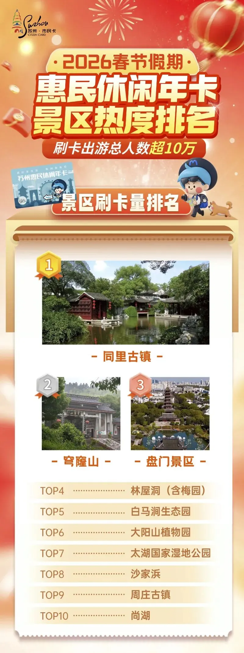谁是 “人气王”?春节假期休闲年卡热门景区Top10揭晓!