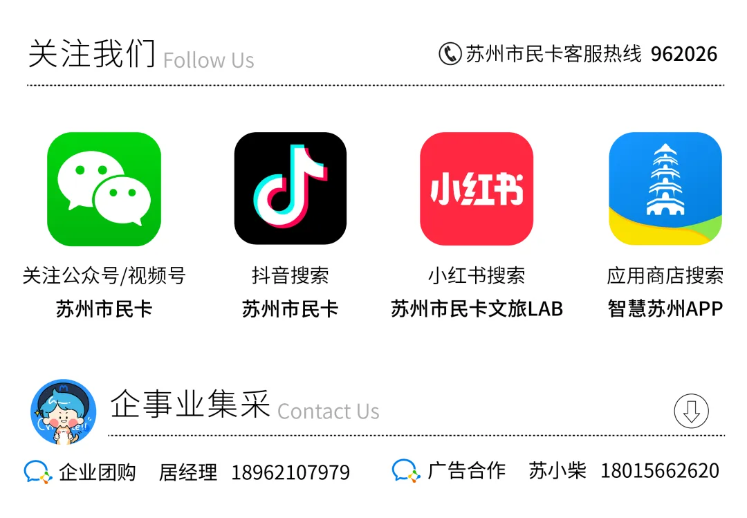 1、关注“苏州市民卡”微信公众号,转发+点赞本篇推文,并留言写下“春节假期你用休闲年卡去了哪些景区?”或“你对休闲年卡想提出的建议”(留言需为原创及首次发布,不得抄袭,一经发现,取消抽奖资格)