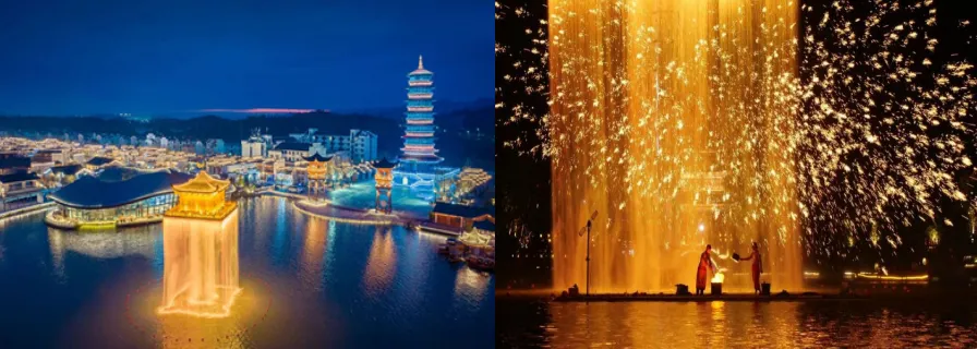 【遇见·婺源】观看全新升级古徽州独特的戏曲大戏、大型户外实景演出(约50分钟)备注:如景区政策停演或不可抗拒原因停演,项目无费用可退。高手山水灵动,灯光与人的完美结合,超级震撼的实景演艺让您流连忘返,一生必看的演出,只在婺女洲;后可自行观看非遗【打铁花】【火壶】(景区赠送项目,如遇天气或不可抗拒性因素景区停演,则不做为投诉理由)后可自由漫步风格各异的美食商业街,随处可见特色小吃,配以大众所爱口味,漫步小镇食街长巷,享珍馐美味小吃,刷新您的味蕾。后入住酒店休息。