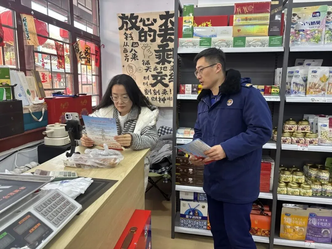 随后,宣传队伍深入景区沿街店铺,开展精准化宣传。他们走进餐饮、零售、纪念品店等各类场所,结合店铺实际经营情况,向商户负责人及员工进行“一对一”讲解。提醒商户注意规范用火用电用气,定期检查更换老旧线路,确保消防通道畅通无阻,并现场指导灭火器的日常检查与使用方法。针对餐饮后厨,特别强调了油锅起火处置、油烟管道定期清洗等关键环节。