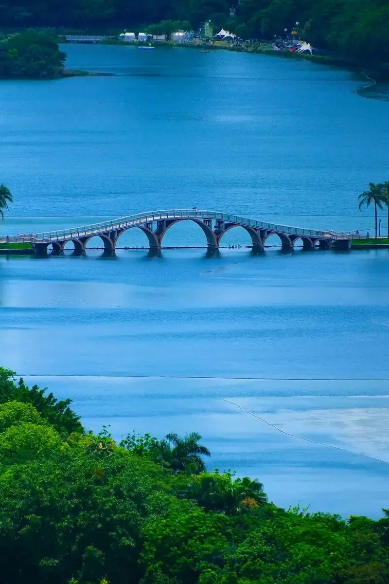 晚上坐邕江夜游,桥灯一亮,像几条弯龙趴在江上。