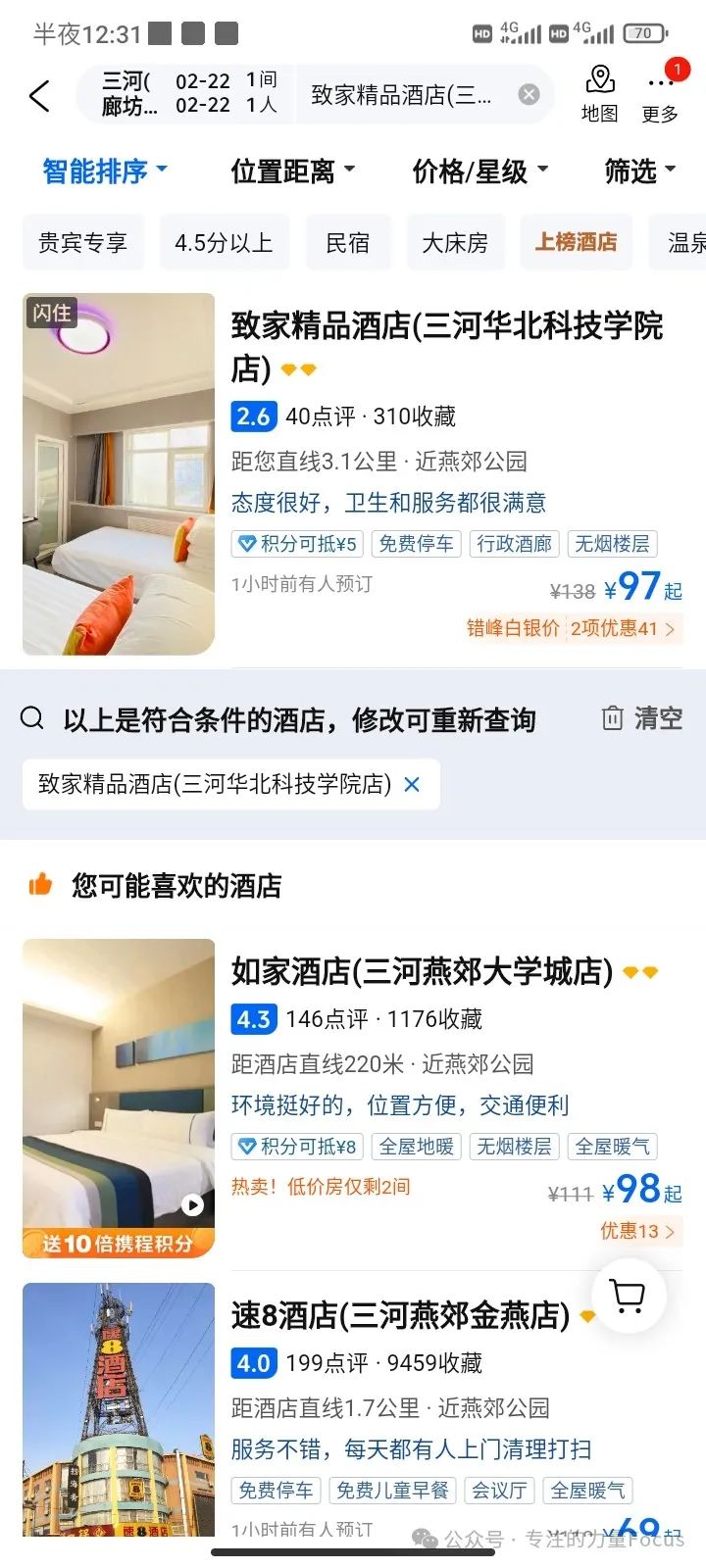 但是他目前携程的评分只有2.6分,就导致他做的非常的差,这种情况下可能永远都回不了本