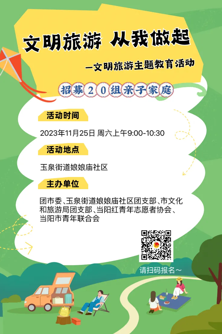 文明旅游 从我做起——文明旅游主题教育活动|第31期关爱青少年公益课堂-玉泉街道娘娘庙社区 正在报名!!共青团当阳市委员会