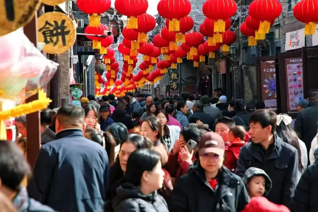 春节假期,周村旅游市场迎来“开门红”,全域旅游尽显“年味盛宴”。青石板街巷间人潮涌动,热闹非凡;百年商埠旗幡焕新,红灯笼高悬,处处洋溢着喜庆的节日氛围;非遗绝活轮番登场,舞龙舞狮、抛绣球等表演引得游客阵阵喝彩.....假日期间全区共开放6家A级景区,接待游客约58万人次,营业收入稳步增长,其中周村古商城景区跻身全市A级景区游客接待量前五名,文旅市场呈现一派繁荣火热景象。