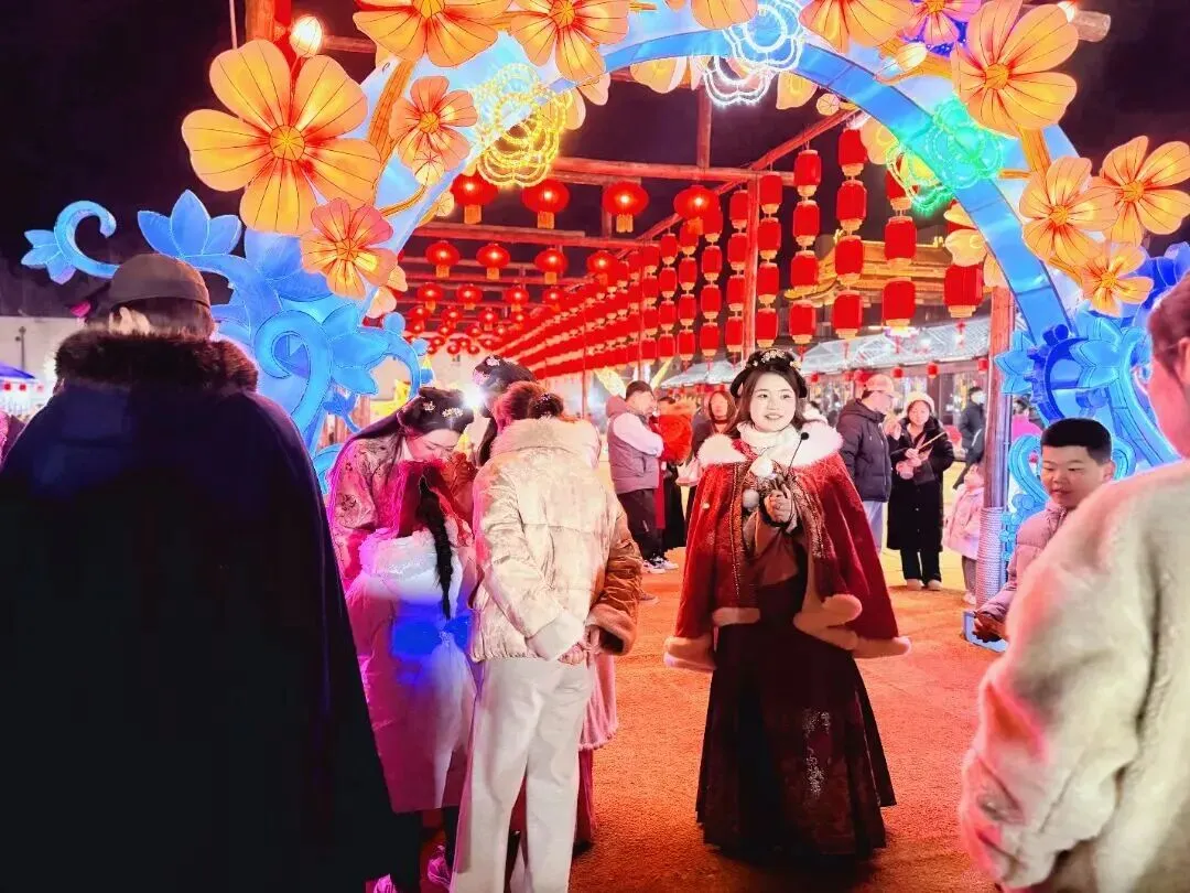 夜晚场,古城内千余盏特色花灯及大型机械花灯组点亮“新春灯会”,打造接地气的花灯喜乐会。此外,在寻梦园全新打造的“蚕谋之夜有喜市”夜间嘉年华,以暴富卡串联非遗市集、财神演艺、蒲公说互动、五德印章集章挑战,并上演杂技顶缸、川剧变脸、武状元献艺、花仙子舞艺等精彩表演,为游客带来可游、可逛、可玩的沉浸式夜游体验,营造春节夜间欢庆祥和的节假日氛围,进一步提升游客游玩观感、促进景区新业态发展,激发夜间文旅消费潜力,打造夜间文旅特色品牌。