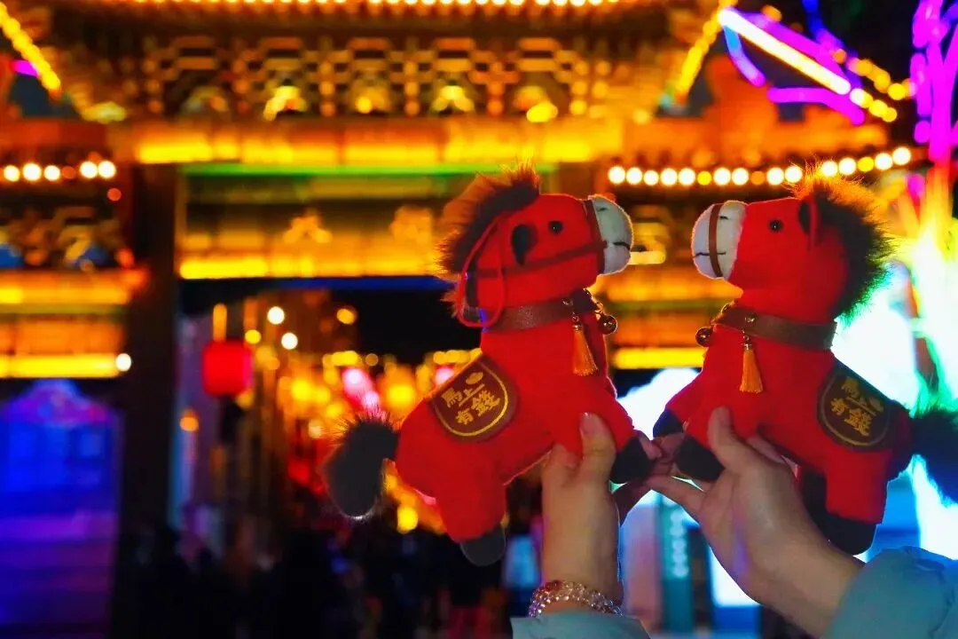白天场,游客可在寻梦园广场逛“财神市集”,品尝传统美食、体验文创潮玩,感受浓郁的市井烟火气;全景区同步开启大型实景剧本游《蚕谋》,游客通过角色扮演解密剧情,沉浸式体验周村商埠历史与丝绸传奇。街头年味大巡游贯穿正月初一至初七,舞狮、秧歌、划旱船、骑毛驴等传统扮玩行当轮番登场,重现老行当巡游的热闹景象;正月初五举办“财神驾到”增福文化活动,将开年纳财的节庆氛围推向高潮。