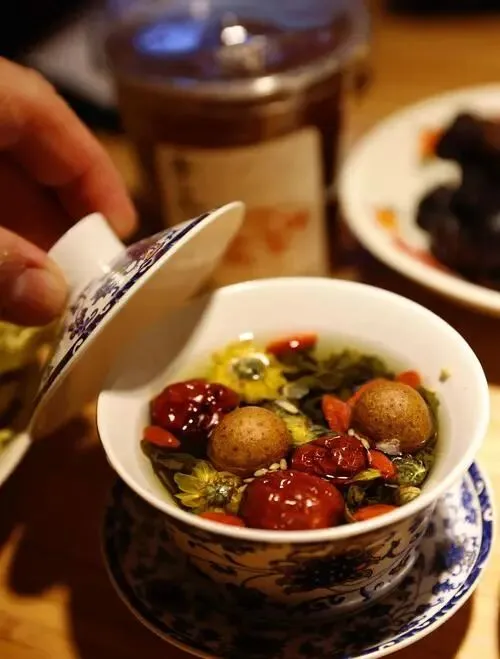 八宝茶要来一壶,枸杞、红枣、桂圆一泡,嘴甜,手也不冷。