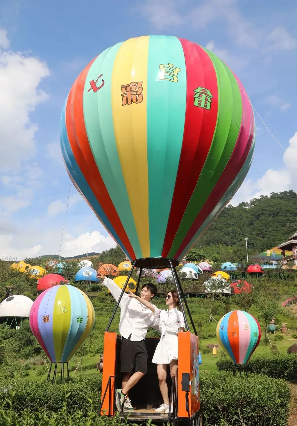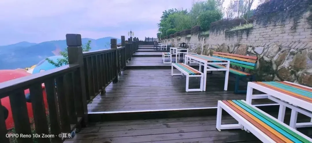 在凤凰台后面,一排排七星瓢虫屋错落有致的分列在山腰上。