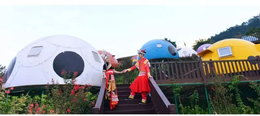 在青山绿水间,红的、白的、蓝的、黄的…..七星瓢虫屋点缀其中,给绿色的山林增添了许多活力~可谓充满野趣和童趣的一个选择~像山间的精灵,定是孩子们最喜欢的去处。