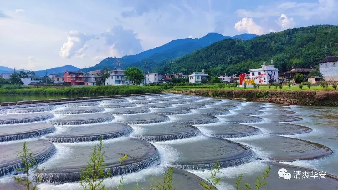 09:30 到达美丽的【鱼鳞坝】-【坪水--鱼鳞坝】,近看像一把一把的小扇子,远看就像一块一块的巨型鱼鳞。清澈的水流,从鱼鳞坝上奔涌而过,激起阵阵洁白的浪花,是一处拍照打卡的好景色。