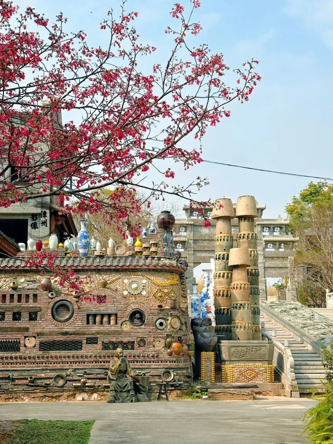 15:00 乘车前往【新福来小镇】,新来福小镇以陶瓷花瓶为特色,将陶瓷艺术融入到了各个角落,通过将花瓶、轮胎、石磨与建筑结合,创造出一种新颖的视觉体验,既美观又富有创意,漫步其中仿佛置身于一个陶瓷艺术的殿堂。在小镇内,沿着时光记忆文化墙漫步,穿梭在仿古城墙和仿古明清牌坊之间,感受闽南传统建筑的魅力。在健康步道上散步,欣赏周边的园林景观,还可以在茶艺馆坐下来,品尝一杯当地的香茶,体验悠闲的小镇生活。
