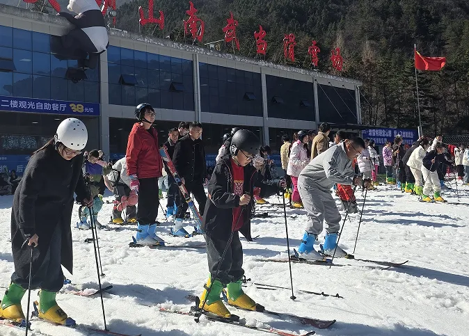 大别山南武当滑雪场 假日期间,英山文旅市场呈现出 “万马奔腾” 的壮观景象。全县接待旅游人次、旅游综合收入分别同比均增长28.25%,29.74%,其中,滑雪温泉突破26万人次;温泉酒店出租率达69.62%,其中洪广毕昇温泉酒店连续三天出租率达93.86%。来自武汉的自驾家庭仍是客源结构主力;高铁“三小时朋友圈”覆盖的合肥、南昌客群有显著增长。“白天滑雪,夜晚泡温泉”成了最时髦的“英山24小时”。神峰山庄、冷山客栈等乡村旅游点人流如织,八方游客在英山全域文旅融合中体验浓浓年味。
