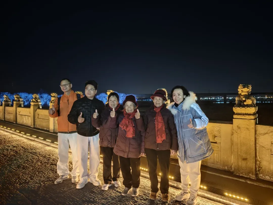 一天前,他们一家15口刚刚在天安门、故宫圆了老人的“北京梦”;而昨晚,应丰台之邀,这户因孝心感动无数网友的家庭,在宛平城的灯火中收获了此行的“第二份惊喜”。
