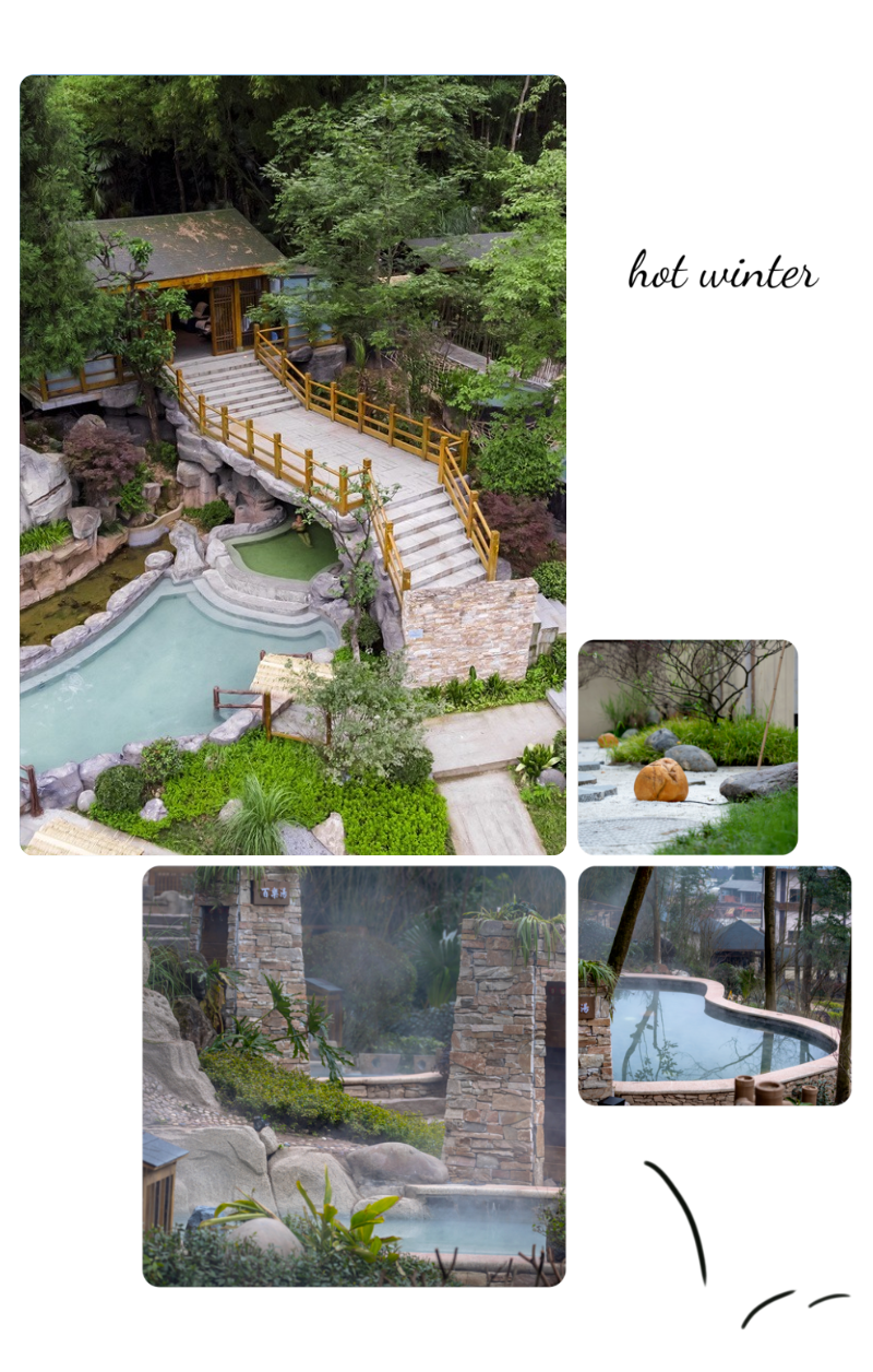 以山野、溪谷、生态的概念来打造,每个泡池景观都做到精致,特色山野温泉错落有致的坐落在半山之间,让您真正拥抱自然。