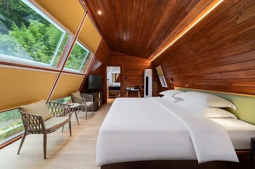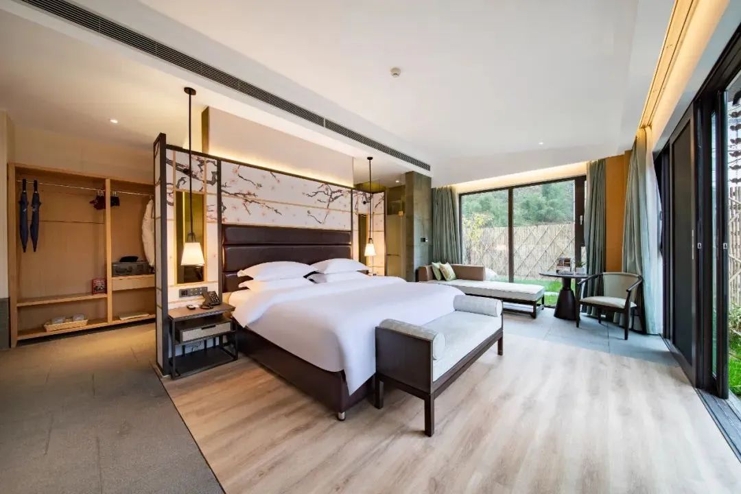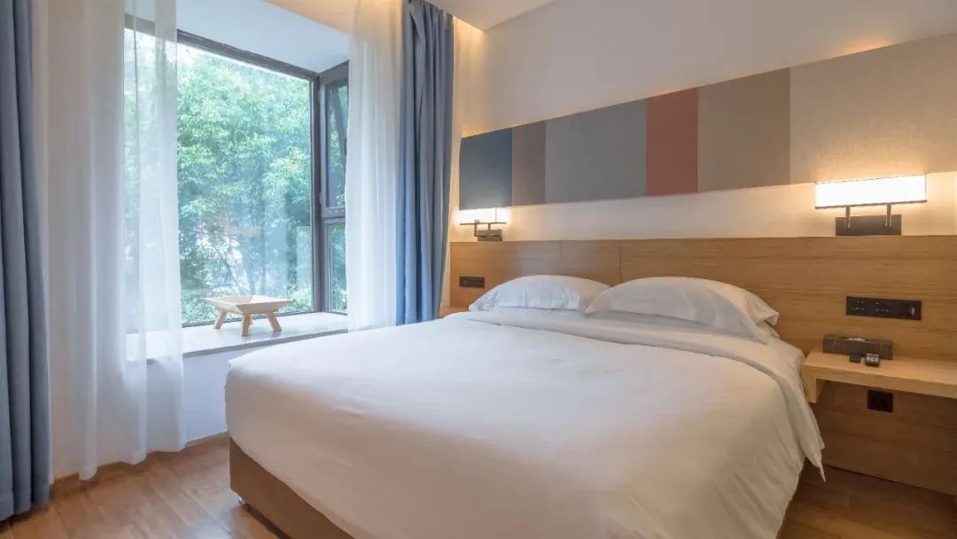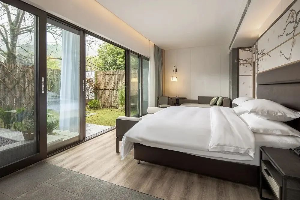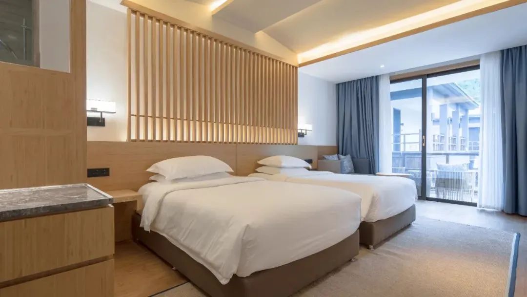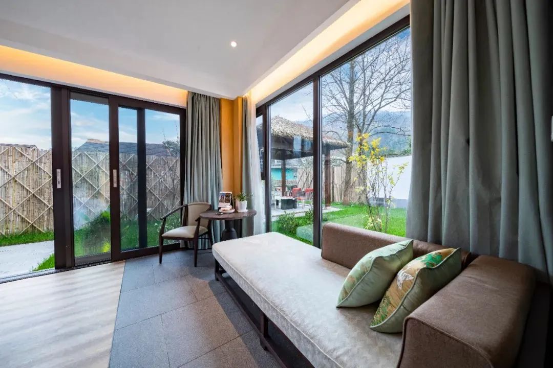 舒适的山居客房,可领略无限山景,站在落地窗前可沐浴清晨阳光,聆听鸟儿歌唱,眺望远处青山,感受山野风光~这也太过美好。
