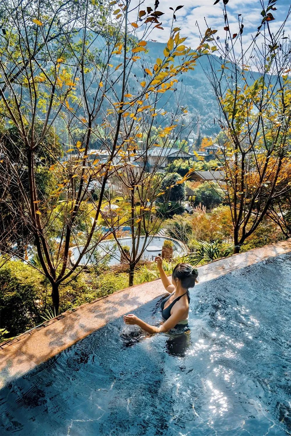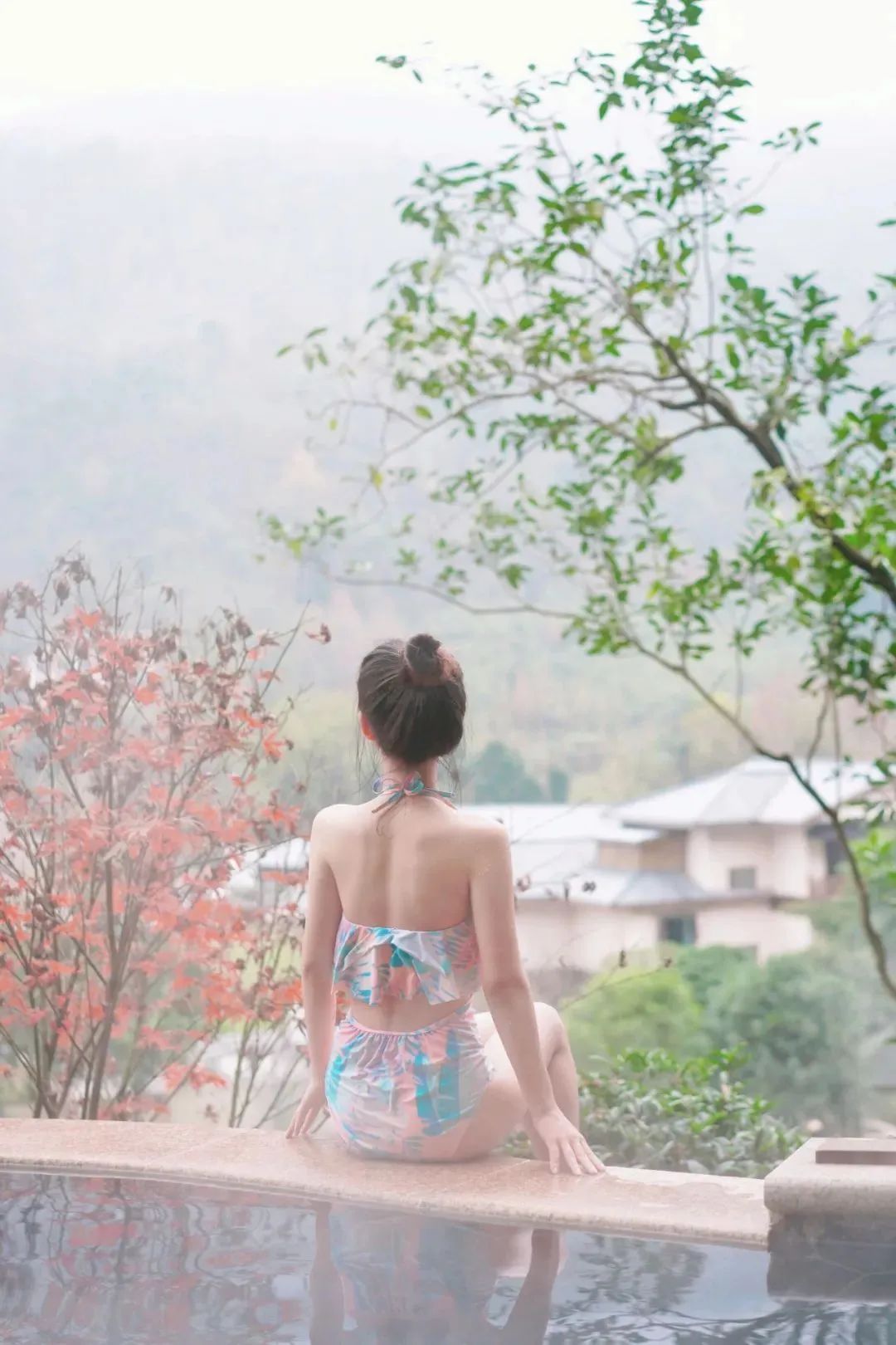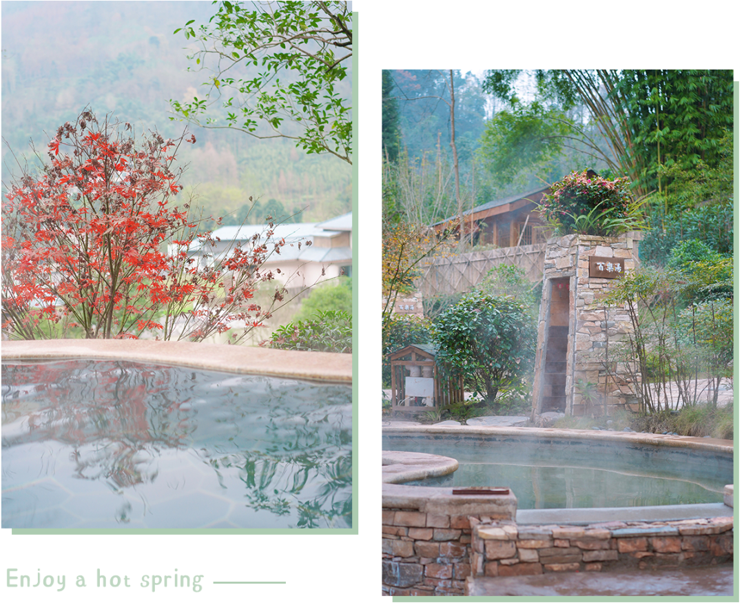泡在舒适的温泉中,尽情的享受热情氤氲,欣赏小花园外的山景,这悠闲的日子,是平时没有的。