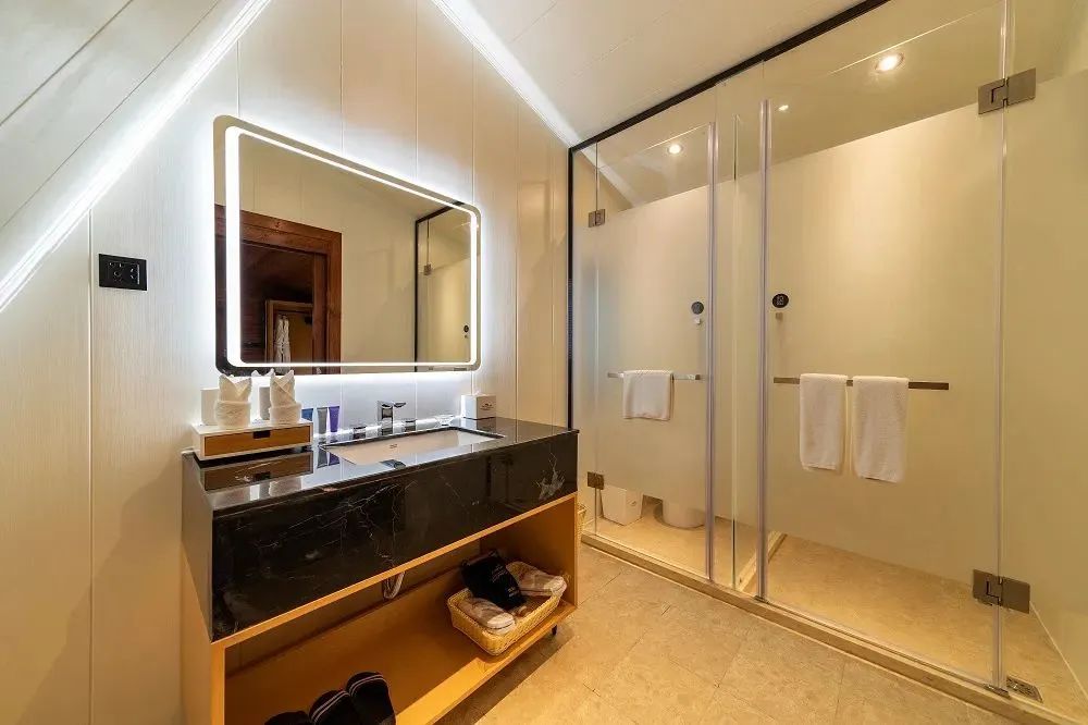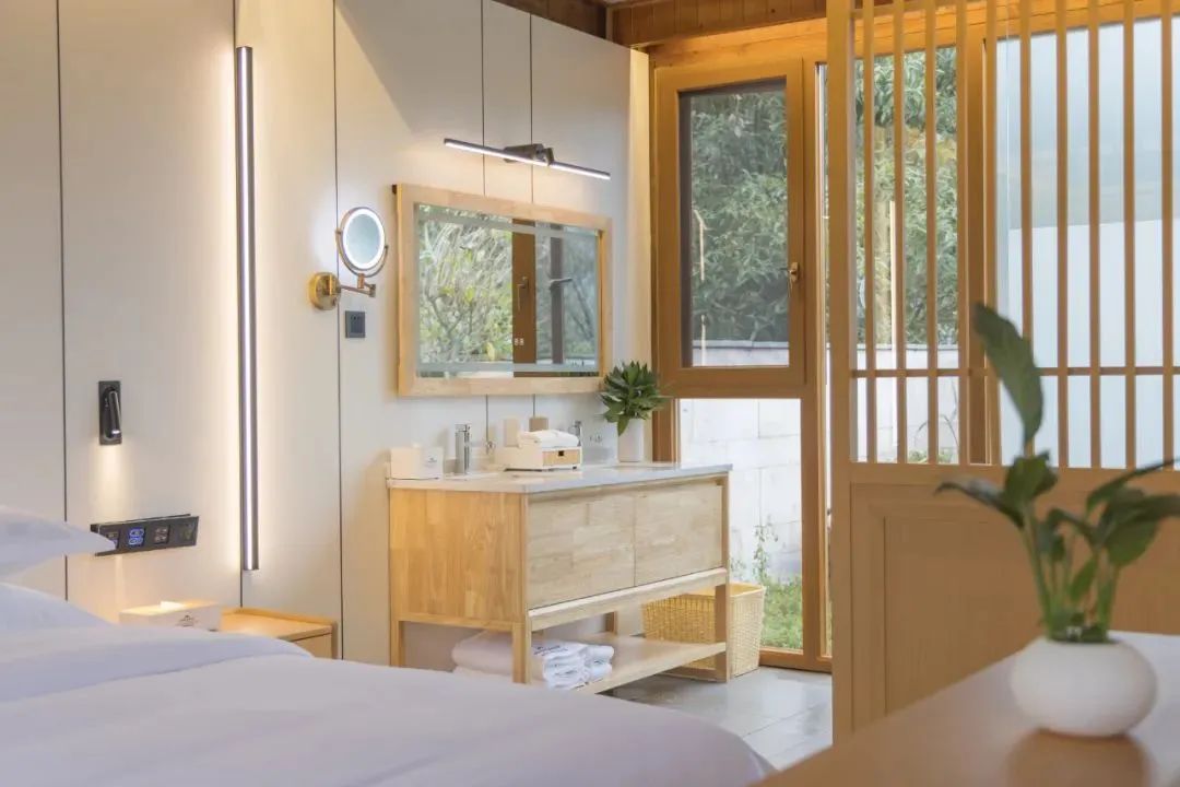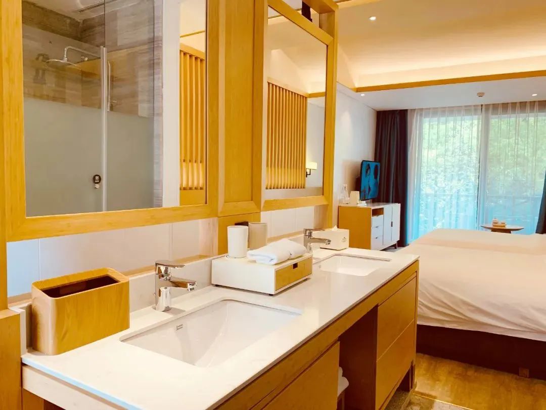 房间内设施一应俱全,闲下来的时候,可以在门前拍一张美照,感受来自山间的美景馈赠,在生机盎然的花水湾,奢享一段难忘之旅!