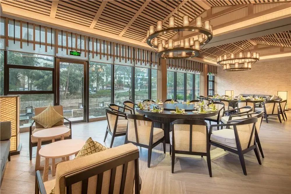 酒店豪生阁餐厅也是令人惊喜的,典雅复古的装修风格让客人用餐环境更加温馨。设有包间、自助早餐台,提供各种山间美味,多重选择,旅途也让味蕾的感受更丰富。