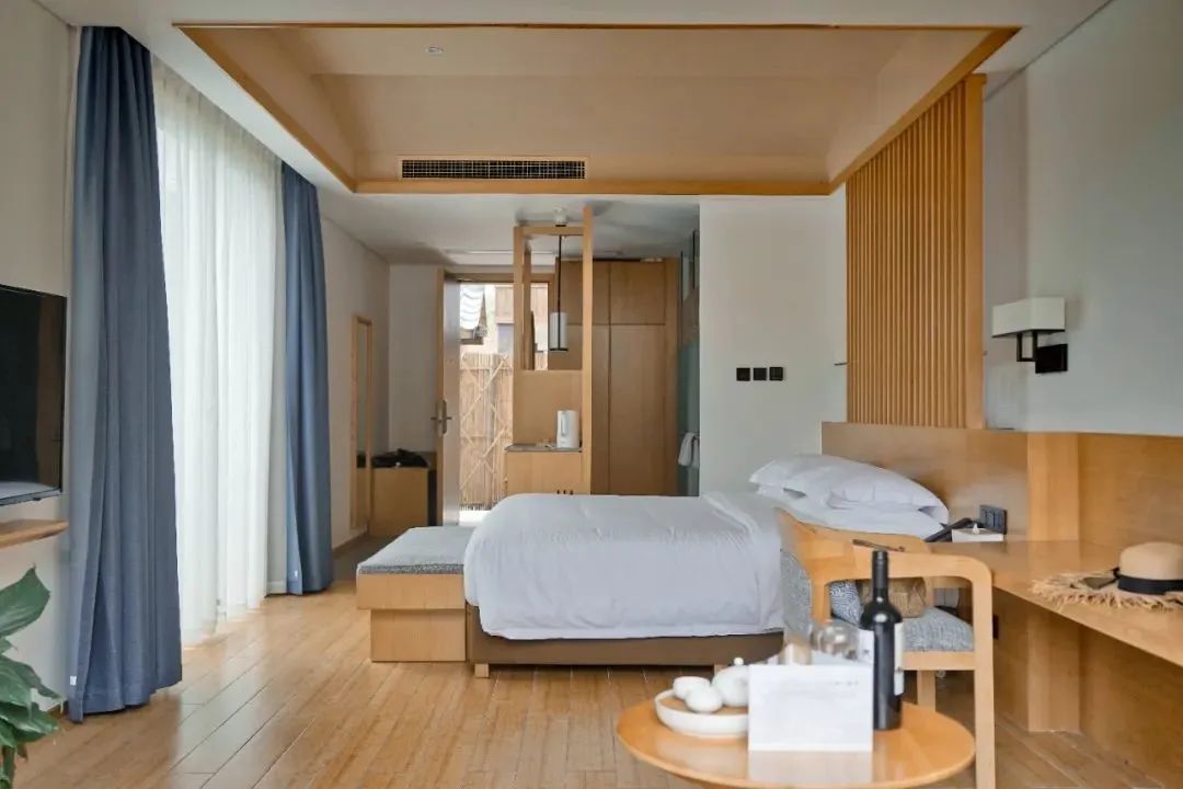 舒适的庭院客房,解锁更贴近于山野之间的度假体验,房间大小刚刚合适,设置有小茶桌等设施,前庭后院房间宽敞舒适,在此可享山野葱郁,自然宁静。