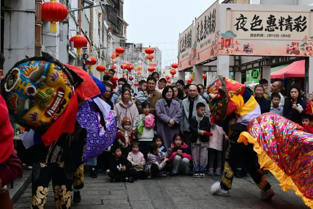 在惠州水东街的惠东非遗展示馆,惠东盖子狮、惠东渔歌、梁化斗牛狮轮番亮相,三场活动累计吸引超6600人次参与。非遗传承人现场献艺、互动教学,游客驻足观赏、沉浸式体验非遗魅力,现场人声鼎沸,为新春惠东注入了厚重的民俗活力。
