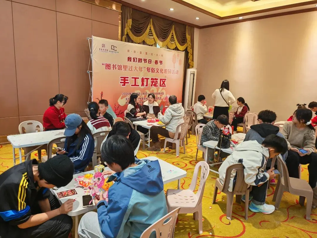 县图书馆推出“图书馆里过大年”年俗文化游园活动,将传统年俗韵味、沉浸式阅读体验与温馨亲子互动深度融合。活动现场书香氤氲、年味十足,处处洋溢着欢声笑语,市民在墨香与年味中欢度佳节。