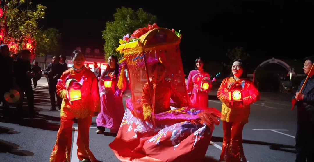 紧随其后的划旱船表演,更是充满浓郁的乡土气息与生活趣味。表演者身着鲜艳喜庆的传统服饰,持手灯、轻摇船,扮相生动、步态轻盈,将民间故事与生活情趣融入表演,唱腔婉转、诙谐幽默,既保留了传统民俗的原汁原味,又增添了新时代的活泼气息。游客与村民围聚观赏,掌声、笑声、喝彩声此起彼伏,浓浓的年味在山水间肆意流淌,唤醒了大家记忆里最温暖的年俗情怀。
