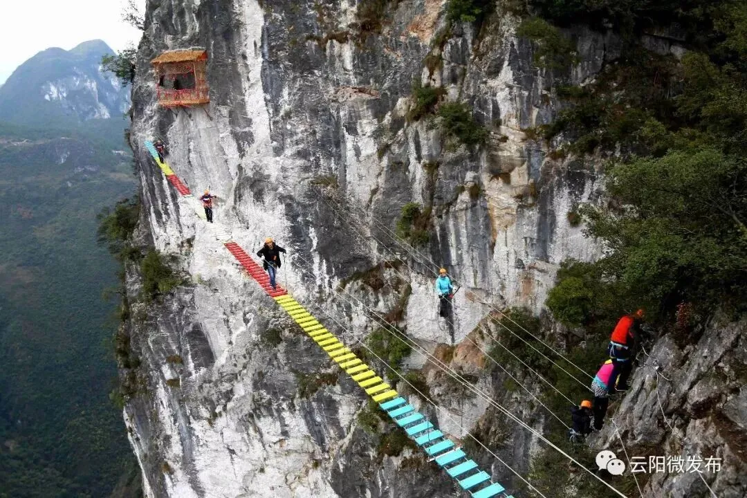 在垂直高度700米的悬崖上,600米长的攀岩径道包含彩虹桥、钢索等挑战,让游客化身“岩壁舞者”,在绝壁间感受肾上腺素飙升的刺激。