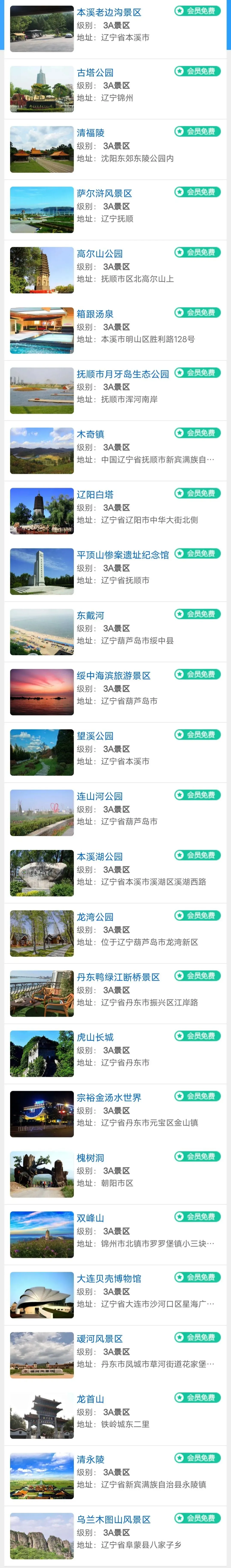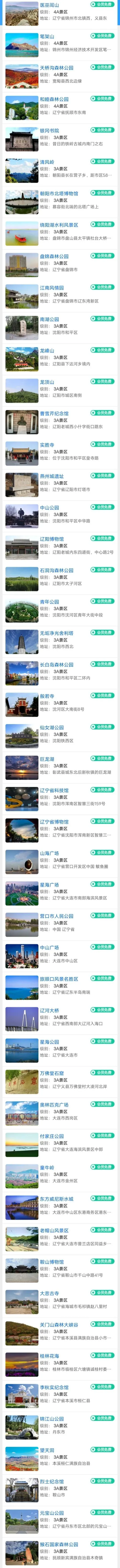 辽宁旅游年卡景区目