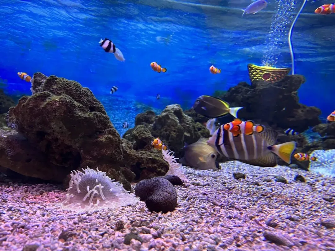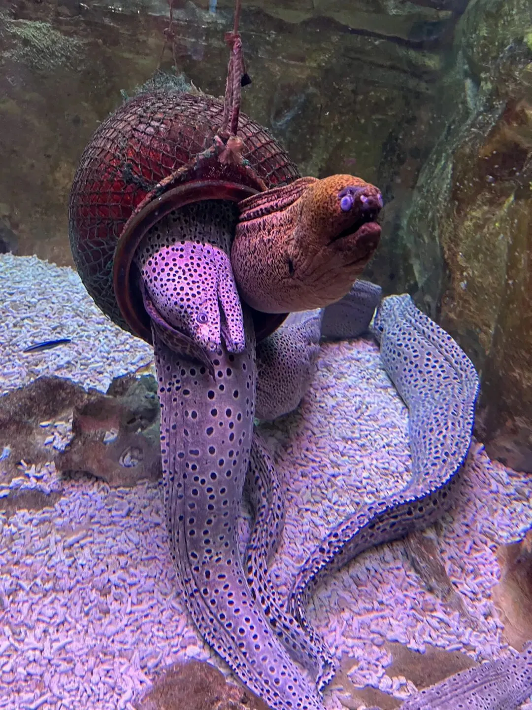 图:海葵(左边白色球状)、海参(海葵旁的黑色长条),我还没看出来是海参,是孩子告诉我的,第一次见海参的真面目